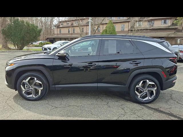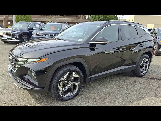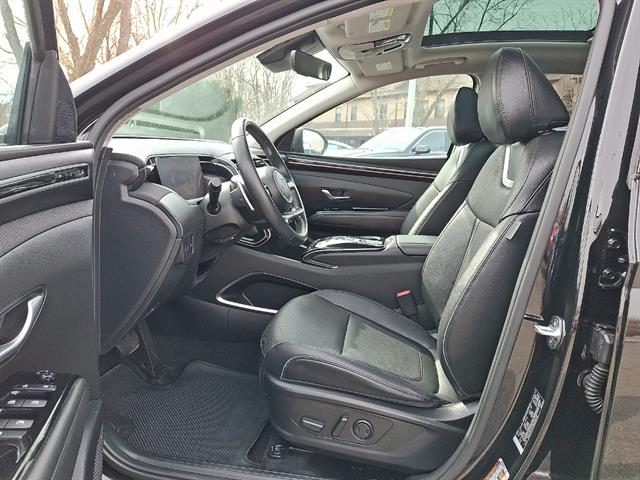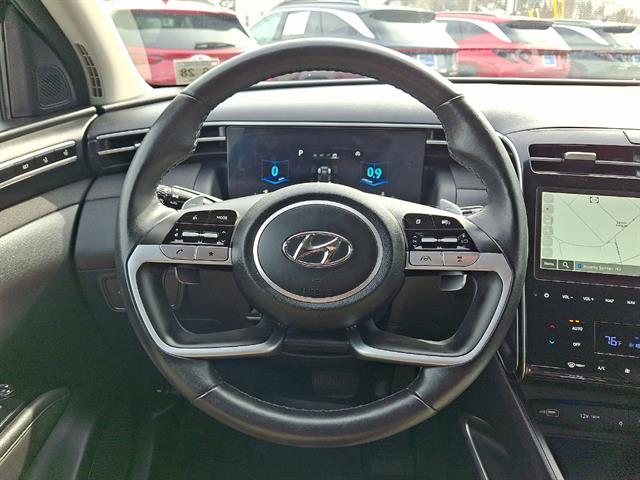 Experience the style and capability of the 2023 Hyundai TUCSON AWD Limited in sleek black. This SUV offers advanced safety features such as Intersection Turn Automatic Emergency Braking, Lane Keeping Assist with Blind Spot Integration, Rear Cross Traffic Alert, and a Surround View Camera System for exceptional peace of mind. Enjoy the luxury of leather-trimmed upholstery, heated and ventilated front seats, a heated steering wheel, and a panoramic sunroof. Stay seamlessly connected with Apple CarPlay, Android Auto, a 10.25-inch infotainment screen, Blue Link smart device app compatibility, and Amazon Alexa in-car apps. The power liftgate, adaptive cruise control with Stop & Go, and remote engine start add convenience to every drive. All-wheel drive and the 2.5L I4 engine deliver confident performance for all seasons. Visit us today to see why the TUCSON Limited is a top choice for those seeking comfort, technology, and safety in a modern SUV.