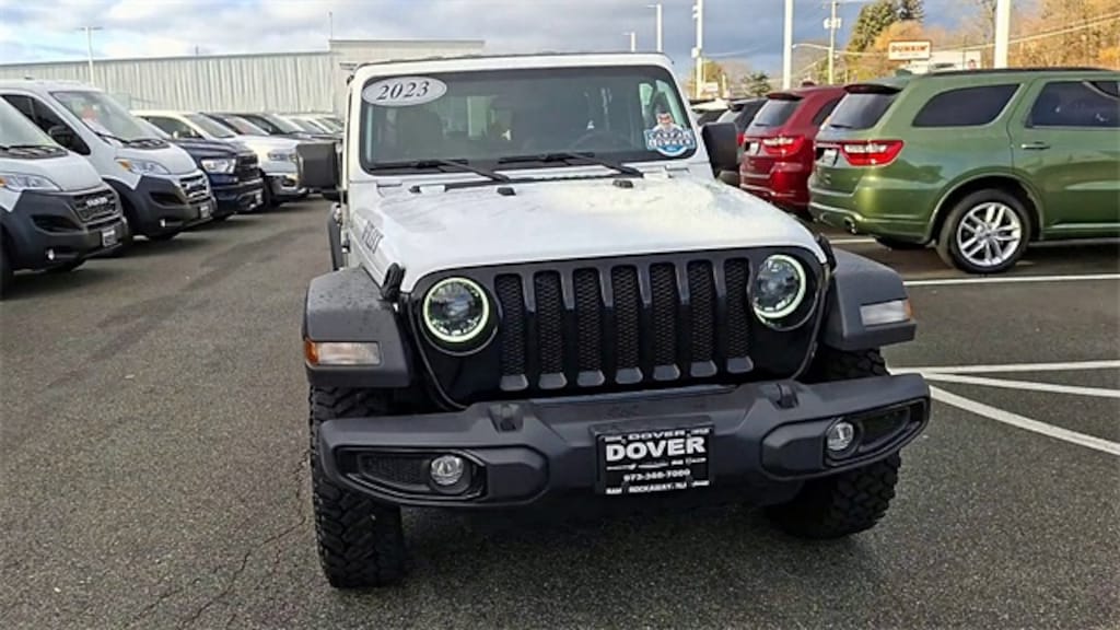 Certified. Bright White Clearcoat 2023 Jeep Wrangler Willys 4WD 6-Speed Manual 3.6L V6 24V VVT