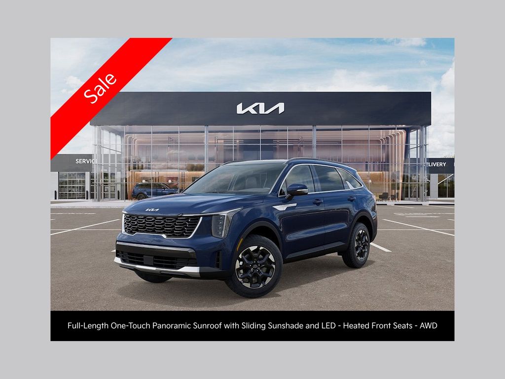 Don't Miss This One!!! This Midnight Lake Blue 2026 Kia Sorento S AWD delivers the perfect combination of bold styling, advanced technology, and everyday versatility. Powered by a responsive 2.5L I4 engine producing 191 horsepower paired with an 8-Speed Automatic transmission and All-Wheel Drive, the Sorento offers confident performance and smooth driving whether you're commuting, running errands, or heading out on a weekend adventure. Achieving an impressive 23/28 City/Highway MPG, this SUV provides capability without sacrificing efficiency.Inside, the Sorento S surrounds you with comfort and modern convenience. The cabin is thoughtfully designed with SynTex Artificial Leather Seat Trim, heated front seats, and a power driver seat to keep you comfortable on every drive. The spacious interior includes third-row split-bench seating, giving you flexible space for passengers or cargo whenever you need it.One of the standout features is the S Panoramic Sunroof Package, which includes a Full-Length One-Touch Panoramic Sunroof with Sliding Sunshade and LED Interior Lighting, filling the cabin with natural light and creating a premium open-air feel that elevates every drive.Technology is front and center with Apple CarPlay & Android Auto integration, allowing seamless connection to your smartphone for navigation, music, messages, and more. The intuitive infotainment system paired with SiriusXM capability, steering wheel mounted controls, and a 6-speaker sound system keeps you connected and entertained wherever the road takes you.Safety and confidence come standard with a wide range of advanced features including Electronic Stability Control, Brake Assist, Auto High-Beam Headlights, Exterior Rear Parking Camera, and a comprehensive airbag system including rear side impact airbags and knee airbags. The Sorentos four-wheel independent suspension and speed-sensing steering provide a smooth, controlled ride in all conditions.Additional highlights include:All-Whe
