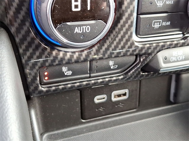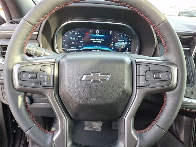 Driver Alert Package (Lane Change Alert w/Side Blind Zone Alert and Rear Cross Traffic Alert), License Plate Front Mounting Package, Luxury Package (2nd Row Pwr Release 60/40 Split-Folding Bench Seat, 3rd Row 60/40 Power-Folding Split-Bench Seat, Adaptive Cruise Control, Enhanced Automatic Emergency Braking, HD Surround Vision, Heated 2nd Row Outboard Seats, Heated Steering Wheel, Memory Settings, Outside Heated Power-Adjustable Mirrors, Power Tilt & Telescopic Steering Column, and Rear Pedestrian Alert), Preferred Equipment Group 1SP (1st & 2nd Row Color-Keyed Carpeted Floor Mats, Auto-Dimming Inside Rear-View Mirror, Bose 9-Speaker Stereo Audio System Feature, Bright Front & Rear Door Sill Plates, Color-Keyed Carpeting Floor Covering, Driver & Front Outboard Passenger Airbags, Enhanced Driver Information Center, Floor Console w/Storage Area, Hands-Free Rear Power Programmable Liftgate, LED Daytime Running Lamps, Memory Settings for Driver, Remote Start, SiriusXM w/360L, Universal Home Remote, Wireless Charging, and Wrapped Steering Wheel), 4WD, Jet Black/Victory Red Leather, 10-Way Power Driver & Passenger Seat Adjusters, 2 USB Data Ports in Center Console Delete, 3.23 Rear Axle Ratio, 3rd row seats: split-bench, 4-Wheel Disc Brakes, 9 Speakers, ABS brakes, Air Conditioning, Alloy wheels, AM/FM radio: SiriusXM with 360L, Apple CarPlay/Android Auto, Auto High-beam Headlights, Auto-dimming Rear-View mirror, Automatic temperature control, Brake assist, Bumpers: body-color, Compass, Delay-off headlights, Driver door bin, Driver vanity mirror, Dual front impact airbags, Dual front side impact airbags, Dual-Pane Power Panoramic Sunroof, Electronic Stability Control, Emergency communication system: OnStar and Chevrolet connected services capable, Floor Console, Four wheel independent suspension, Front anti-roll bar, Front Bucket Seats, Front Center Armrest, Front dual zone A/C, Front High-Back Reclining Bucket Seats, Front reading lights, Fully automatic headlights, Garage door transmitter, Heated door mirrors, Heated Driver & Front Passenger Seats, Heated front seats, Illuminated entry, Infotainment Display, Low tire pressure warning, Memory seat, Navigation System, Occupant sensing airbag, Outside temperature display, Overhead airbag, Overhead console, Panic alarm, Passenger door bin, Passenger vanity mirror, Perforated Leather Seat Trim, Power door mirrors, Power driver seat, Power Liftgate, Power passenger seat, Power Release 2nd Row Bucket Seats, Power steering, Power windows, Premium audio system: Chevrolet Infotainment 3 Premium, Premium Smooth Ride Suspension, Radio: Chevrolet Infotainment 3 Premium System, Rain sensing wipers, Rear air conditioning, Rear anti-roll bar, Rear reading lights, Rear seat center armrest, Rear window defroster, Rear window wiper, Remote keyless entry, Roof rack: xxxxxx, Security system, Set of 4 Wheel Locks (LPO), Speed control, Speed-sensing steering, Split folding rear seat, Spoiler, Steering wheel mounted audio controls, Tachometer, Telescoping steering wheel, Tilt steering wheel, Traction control, Trip computer, Variably intermittent wipers, Voltmeter, and Wheels: 22" x 9" Bright Machined.