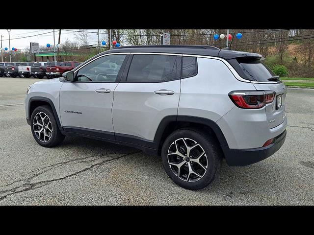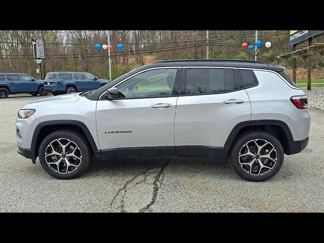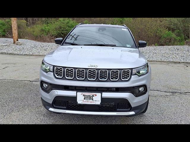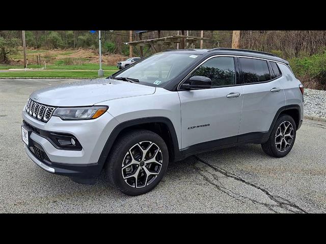 Drive in style and confidence with this low-mileage 2025 Jeep Compass Limited 4x4 in stunning Silver, showing just 9,144 miles! Enjoy advanced safety with adaptive cruise control, lane keeping assist, front and pedestrian automatic emergency braking, and blind spot monitoring. Stay connected with a 10.1-inch Uconnect infotainment system, wireless Apple CarPlay and Android Auto, Amazon Alexa compatibility, and built-in Wi-Fi hotspot. Premium touches include leatherette upholstery, heated side mirrors, power driver seat with lumbar support, and a leather-wrapped steering wheel. Versatility abounds with 60/40 split-folding rear seats, rearview camera, rear parking sensors, and roof rails. Powered by a robust 2.0L Turbo I4 engine paired with an 8-speed automatic transmission and Jeep's legendary 4x4 capability, this Compass is ready for any adventure. Don't miss out on this feature-packed, nearly new SUV-schedule your test drive today!