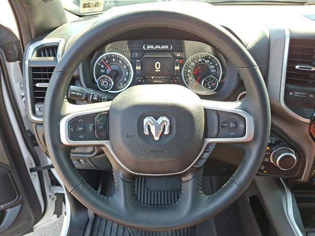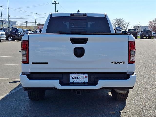 Discover power and comfort in this White 2023 Ram 1500 Big Horn Crew Cab 4x4. Equipped with the robust Pentastar eTorque 3.6L V6 engine and an 8-speed shiftable automatic transmission, this truck is ready for work or play. The Big Horn Level B Equipment Group adds deluxe cloth bucket seats and advanced technology, including Uconnect infotainment with Bluetooth, a 5" touchscreen, and voice-operated controls. Enjoy convenient features like a power locking tailgate, remote start, push-button start, and rearview camera. Stay in control with part-time 4WD, anti-spin rear differential, and trailer stability control. Chrome accents, aluminum alloy wheels, LED bed lighting, and rear wheelhouse liners add style and utility. Safety features include ParkSense front/rear park assist, dual front/side curtain airbags, and a tire pressure monitoring system. With cruise control, dual-zone air conditioning, and ample storage throughout, this Ram 1500 Big Horn is built for comfort, capability, and style. Schedule your test drive today!